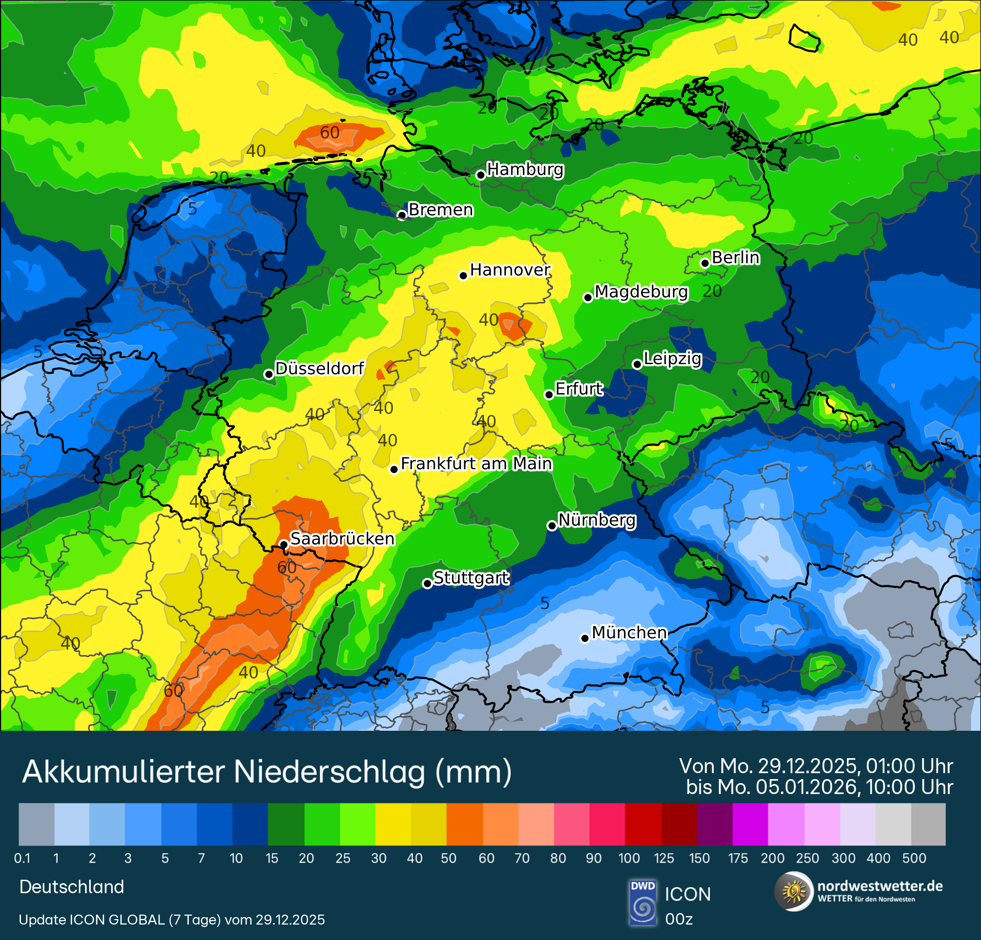 Hier mal die möglichen, akkumulierten Niederschlagsmengen nach einer Luftmassengrenze